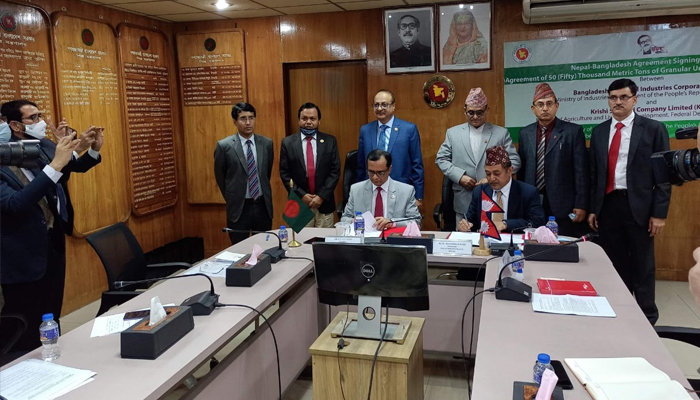 As per the Ministry of Agriculture and Livestock Development, Agricultural Inputs Company Limited of Nepal and Bangladeshi Chemical Industries Corporation signed the agreement on Thursday.