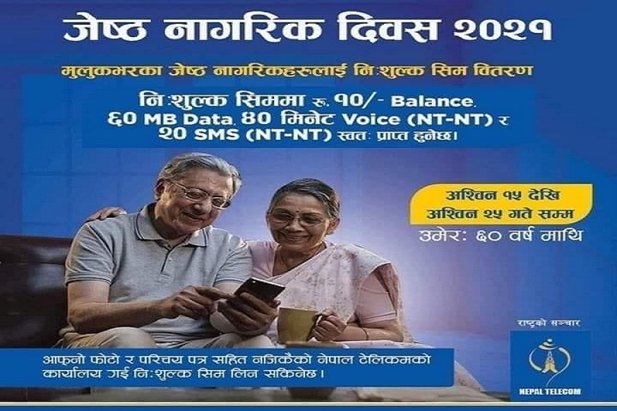 KATHMANDU: Nepal Telecom (NT) is giving away free SIM cards to senior citizens. Celebrating the International Senior Citizens Day on October 1, the state-owned telco is offering SIM cards free of cost to senior citizens.