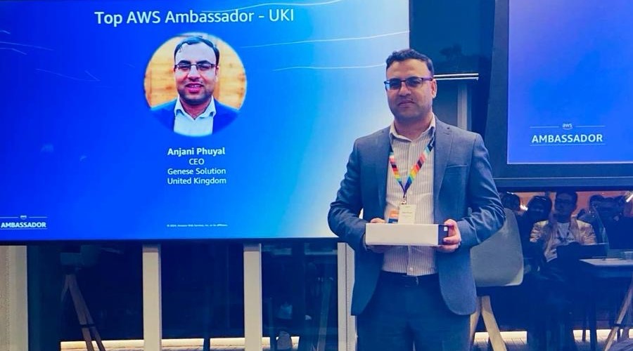 USA: CEO of Genese Solution, a UK-based IT consulting company, Anjani Phuyal, has been recognised as a top AWS Ambassador at the AWS Global Summit being held at Amazon’s global headquarters in Seattle, Washington. He has been recognised as top AWS (Amazon Web Services) Ambassador for UK and Ireland region.