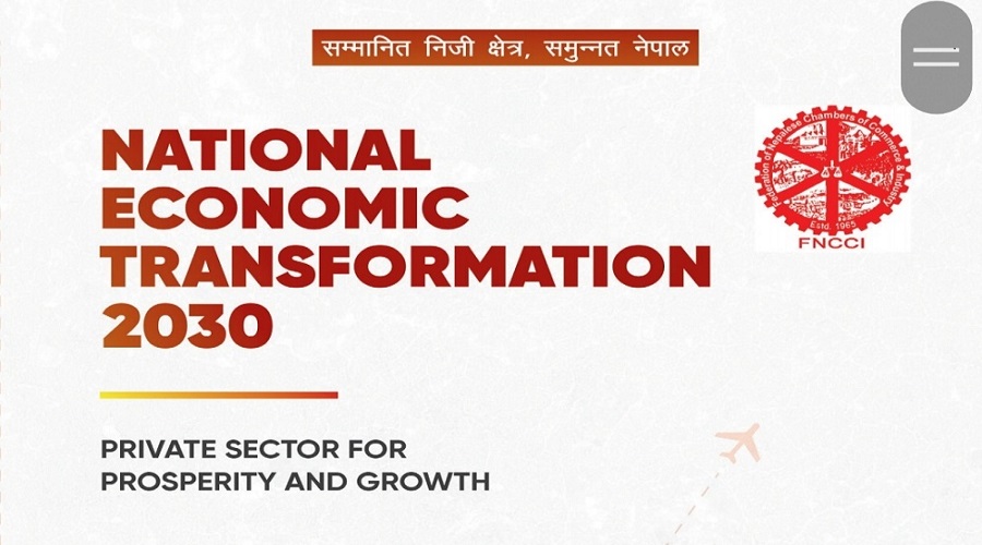 KATHMANDU: The Federation of Nepalese Chambers of Commerce and Industry (FNCCI) has released its 10 year vision ‘National Economic Transformation-2030’ which targets to expand Nepal’s economy to USD 100 billion within next ten years.
