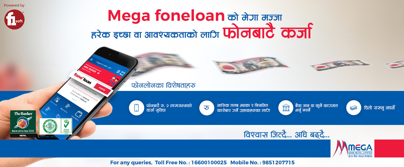 KATHMANDU: Mega Bank has brought instant loan facility from its smartphone for the convenience of its customers.