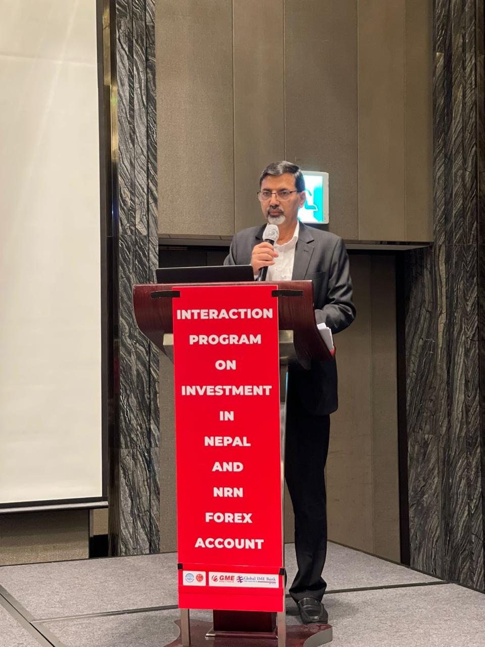 During the program, Ratna Raj Bajracharya, Chief Executive Officer of Global IME Bank, gave a presentation about the foreign currency account introduced by Global IME Bank, its operation process and benefits.
