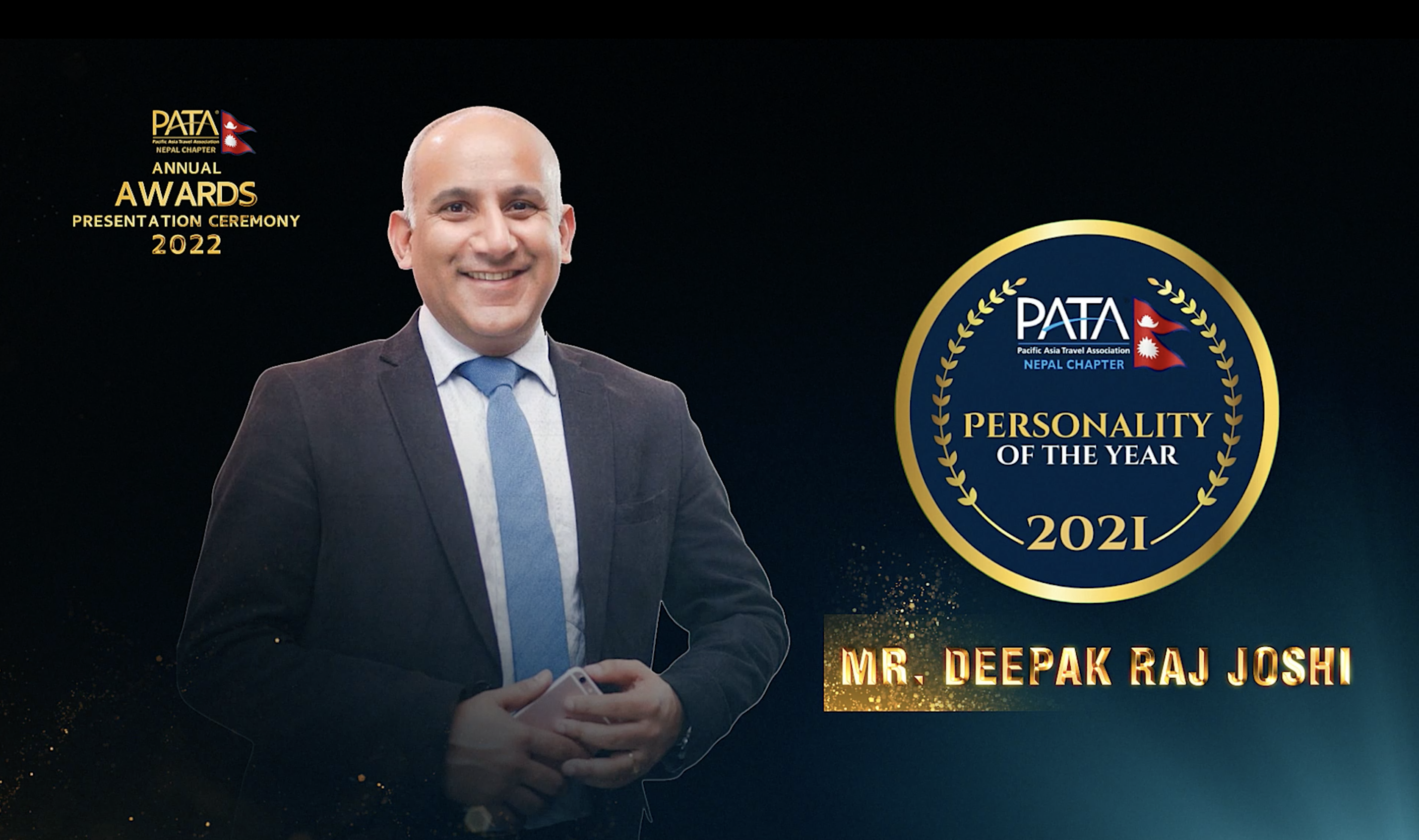Deepak Raj Joshi received the prestigious “PATA Personality of the Year 2021” during the PATA Nepal Chapter featured Annual Award ceremony at the formal function of PATA ID and World Tourism Day Celebration 2022 held on 26th September at GATE, Kathmandu.