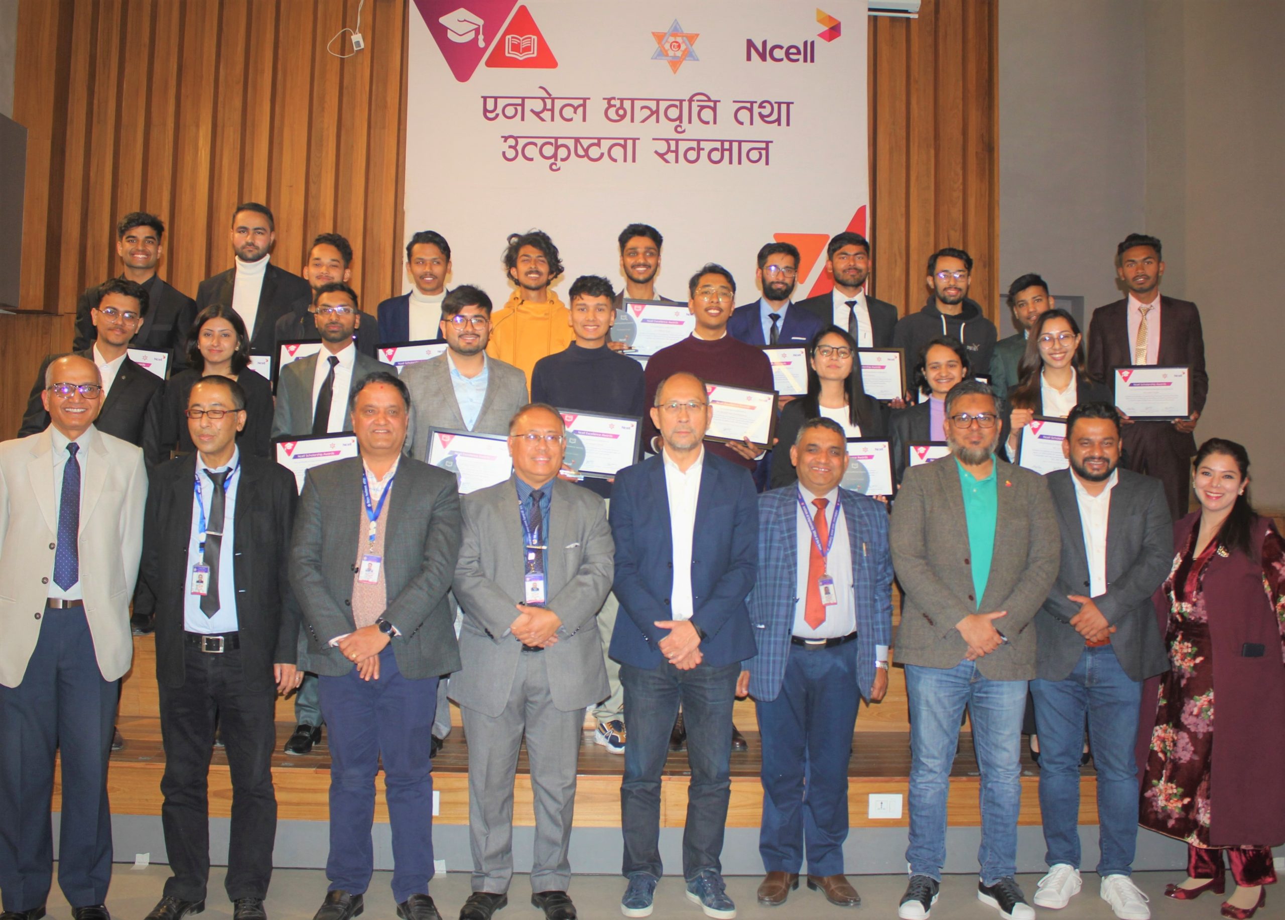 Similarly, the students graduating with top scores from each of these five faculties and also a female student graduating with top scores among all female students of the five faculties were honoured with the Ncell Excellence Awards. Both scholarships and excellence awards are worth Rs. 100,000 each.