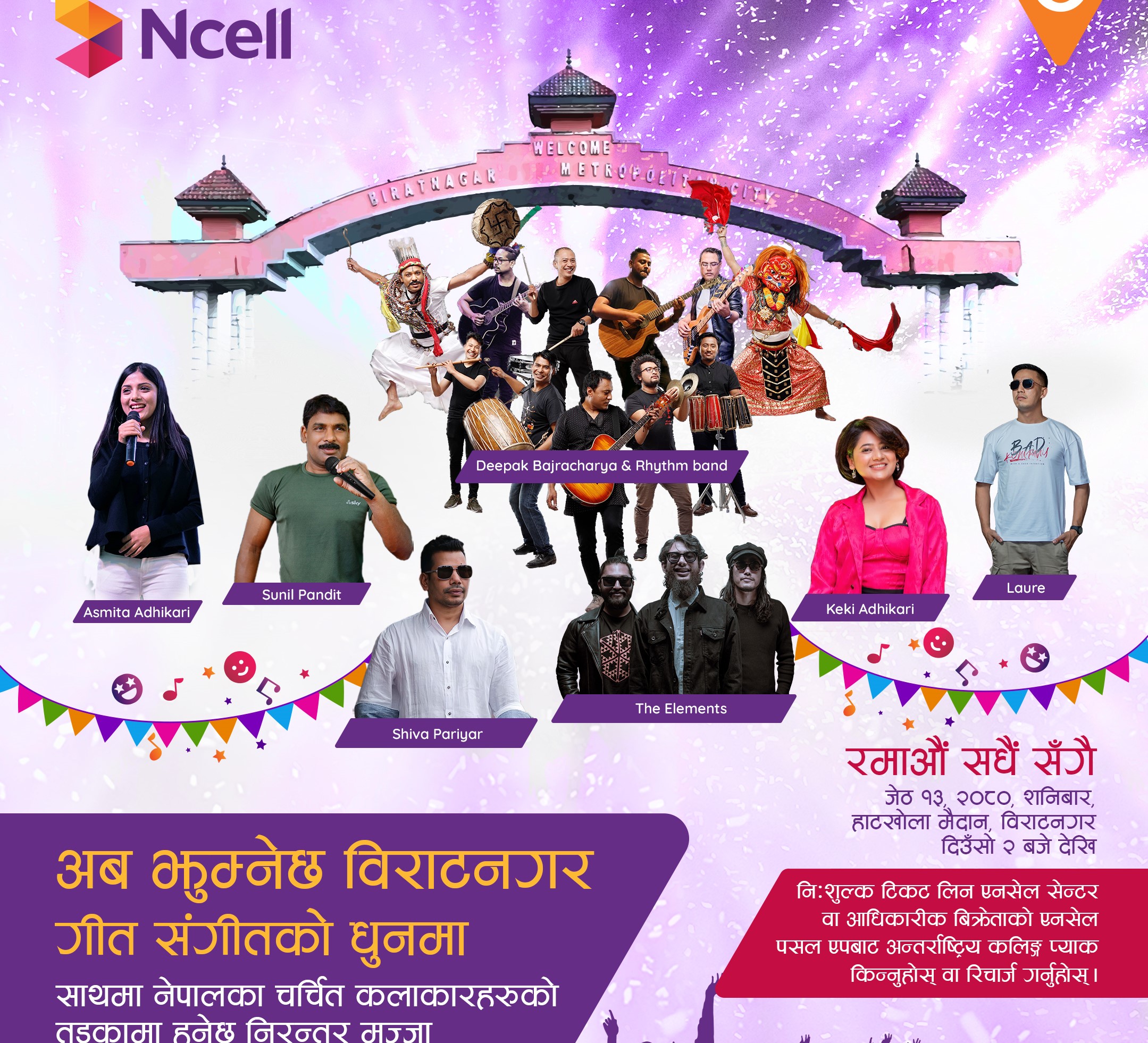 Additionally, Ncell’s Facebook page will stream live coverage of this concert. As a result, the program will be accessible to all Nepali brothers and sisters living in the nation and abroad in addition to Biratnagar’s citizens.