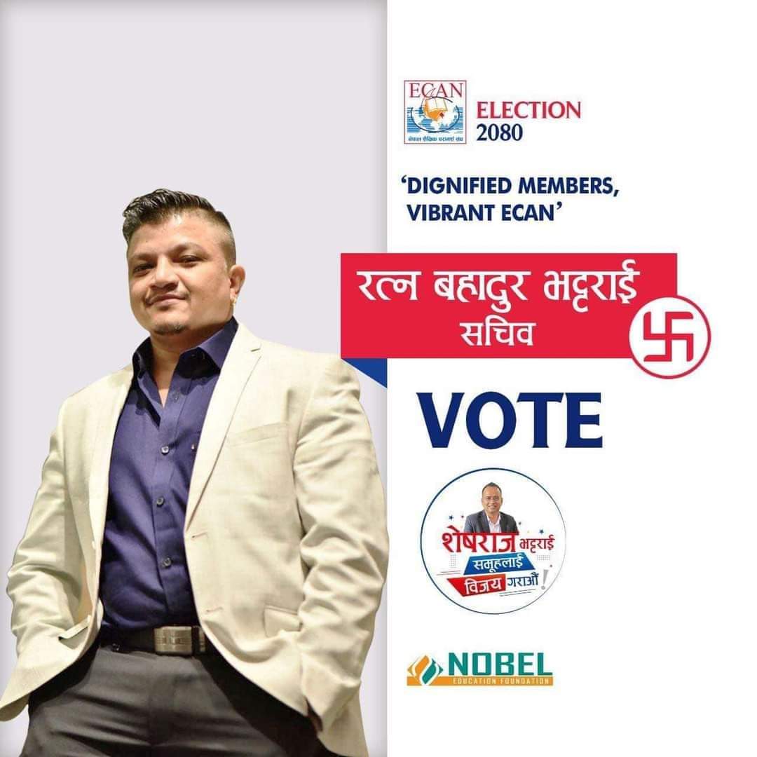 As the ECAN Secretary candidate from Seshraj Bhattarai’s panel, Ratna Bahadur Bhattarai brings extensive experience and a proven dedication to the education consultancy sector. His invaluable insights and achievements in the field make him a compelling candidate for leading ECAN towards a brighter future. The upcoming ECAN election provides an opportunity for members to elect a visionary leader who can drive positive change, elevating the education consultancy sector in Nepal to new heights.