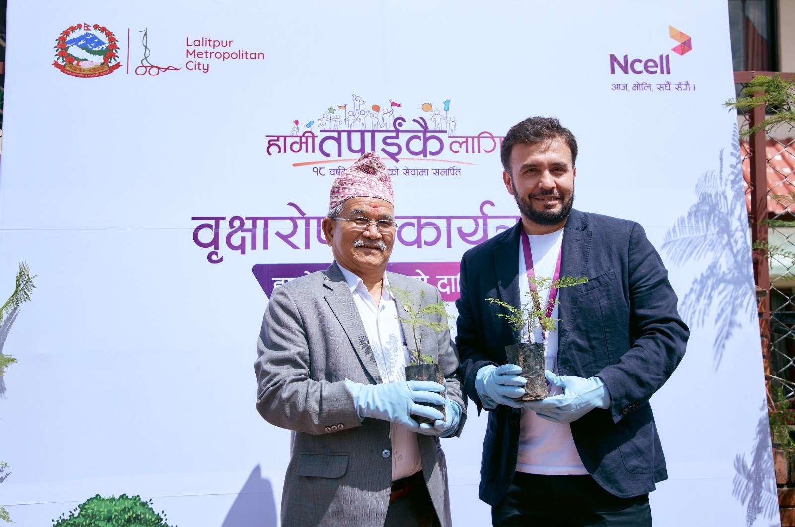 Addressing the tree plantation programme, Jabbor Kayumov, CEO and MD of Ncell said, “I am of the belief that there are 3 important things in our lives, i) build a house, ii) raise a child and iii) plant a tree. I am personally privileged and honoured to be a part this great initiative of a cleaner greener city. I hope these trees will have a very long life, contributing towards healthier environment of our beautiful city of Kathmandu Valley. Ncell is a responsible operator when it comes to giving back to society and we are happy to collaborate with Lalitpur Metropolitan City for this project further strengthening our bond with it. We are proudly dedicated to our goal of nurturing the nature.” He said that Ncell has always accorded highest priority to environment/climate action under Ncell’s Corporate Social Responsibility (CSR), as part of our Net-Zero carbon commitments by 2050 and Environment, Society, and Governance (ESG) Framework of the Axiata Group.