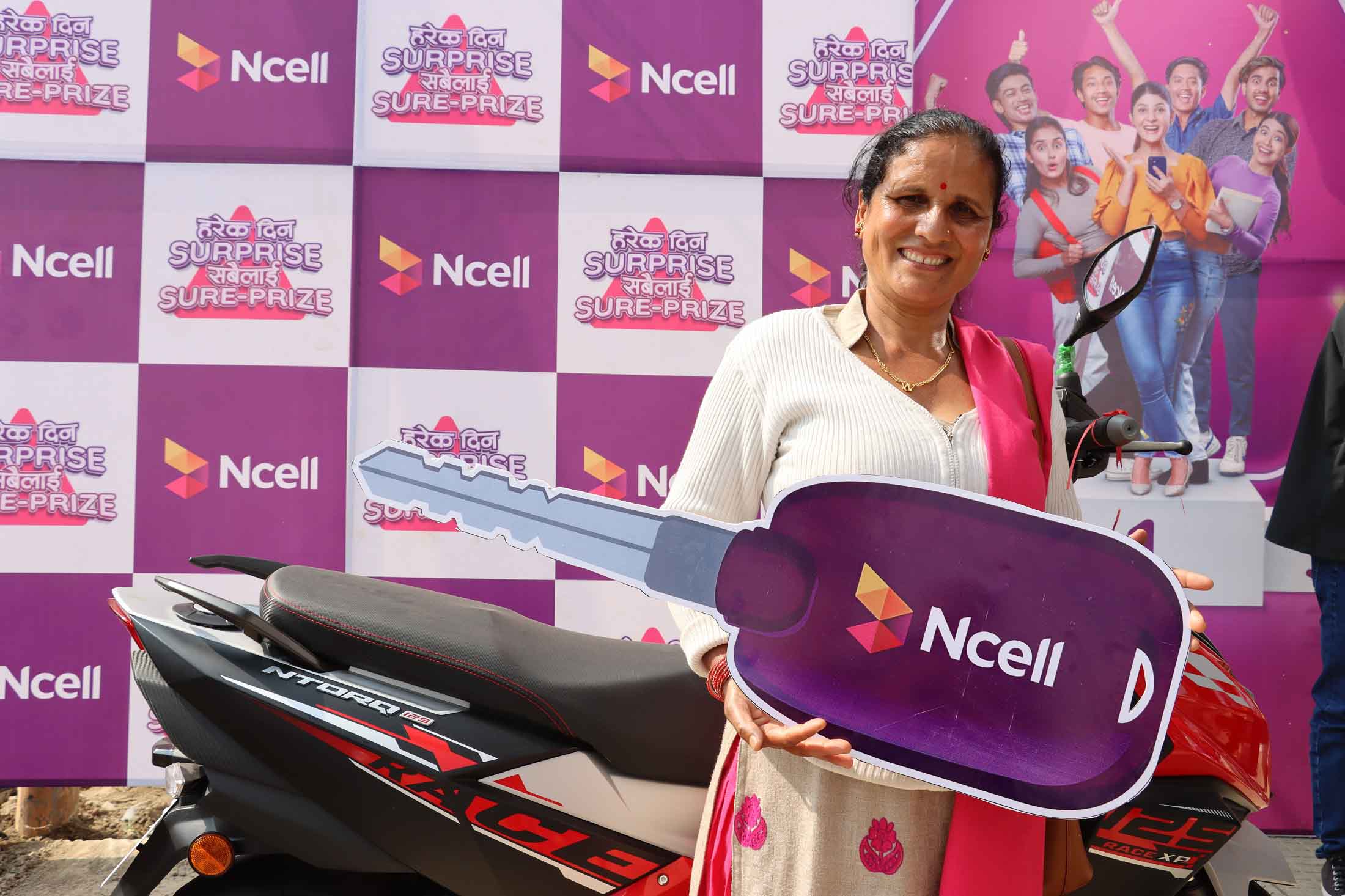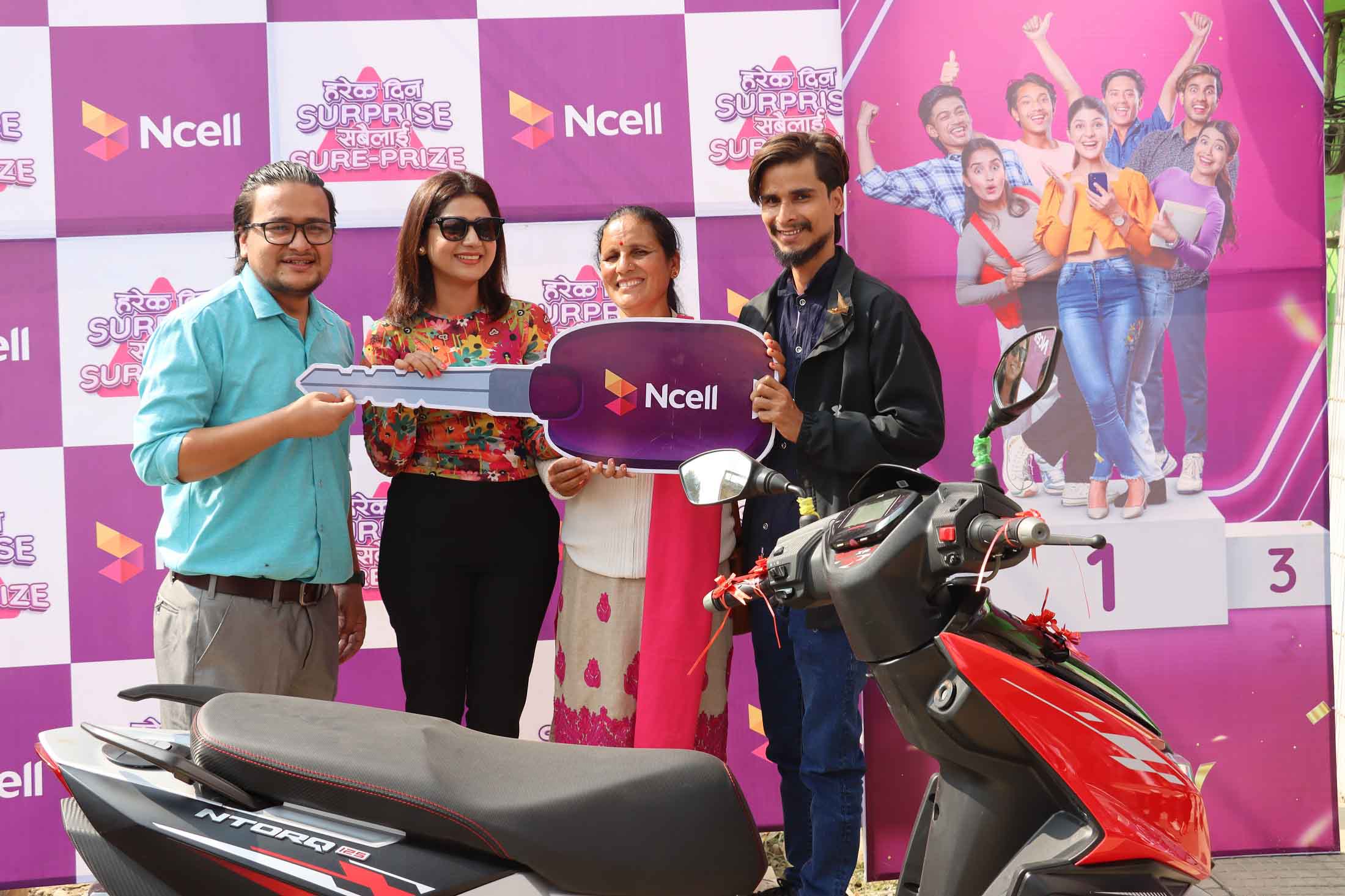 In Biratnagar, Actress Priyanka Karki handed over the bumper prize to Rohan Sharma of Sunsari, while in Dhangadi, Actress Keki Adhikari handed the prize to Goma Kumari Kharal from Surkhet. Similarly, Rina Dhakal was awarded the bumper prize by Vishal Negi, Products Director of Ncell at the Ncell Centre in Hetauda.