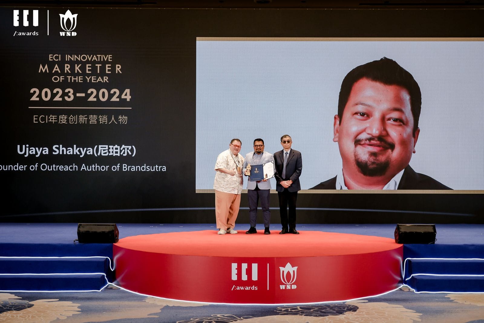 KATHMANDU: Ujaya Shakya, received the prestigious “ECI Innovative Marketer of the Year 2023” award at the Gala Event hosted by the ECI Festival on December 7th, 2024. The event is held in Wuxi City, China. Ujaya, known as a thought leader in South Asia, recognized for his remarkable contributions to advertising and marketing in the region. Emphasizing an empathy-driven approach in brand communication, Shakya stands out for his continuous endeavors in innovative thinking and practices. He addressed a diverse audience at the ECI Festival, highlighting the enduring importance of the human feelings in the data-driven world.