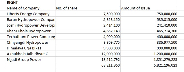 Previously, the Securities Board of Nepal (SEBON) had approved rights share issuance for hydropower companies in Poush.