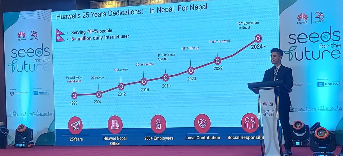 Despite being a global brand, Huawei has been serving Nepal for more than 25 years, aiming to build a fully connected and intelligent Nepal. Through programs like ‘Seeds for the Future,’ Huawei is committed to developing young talents and expanding global ICT knowledge within Nepal.