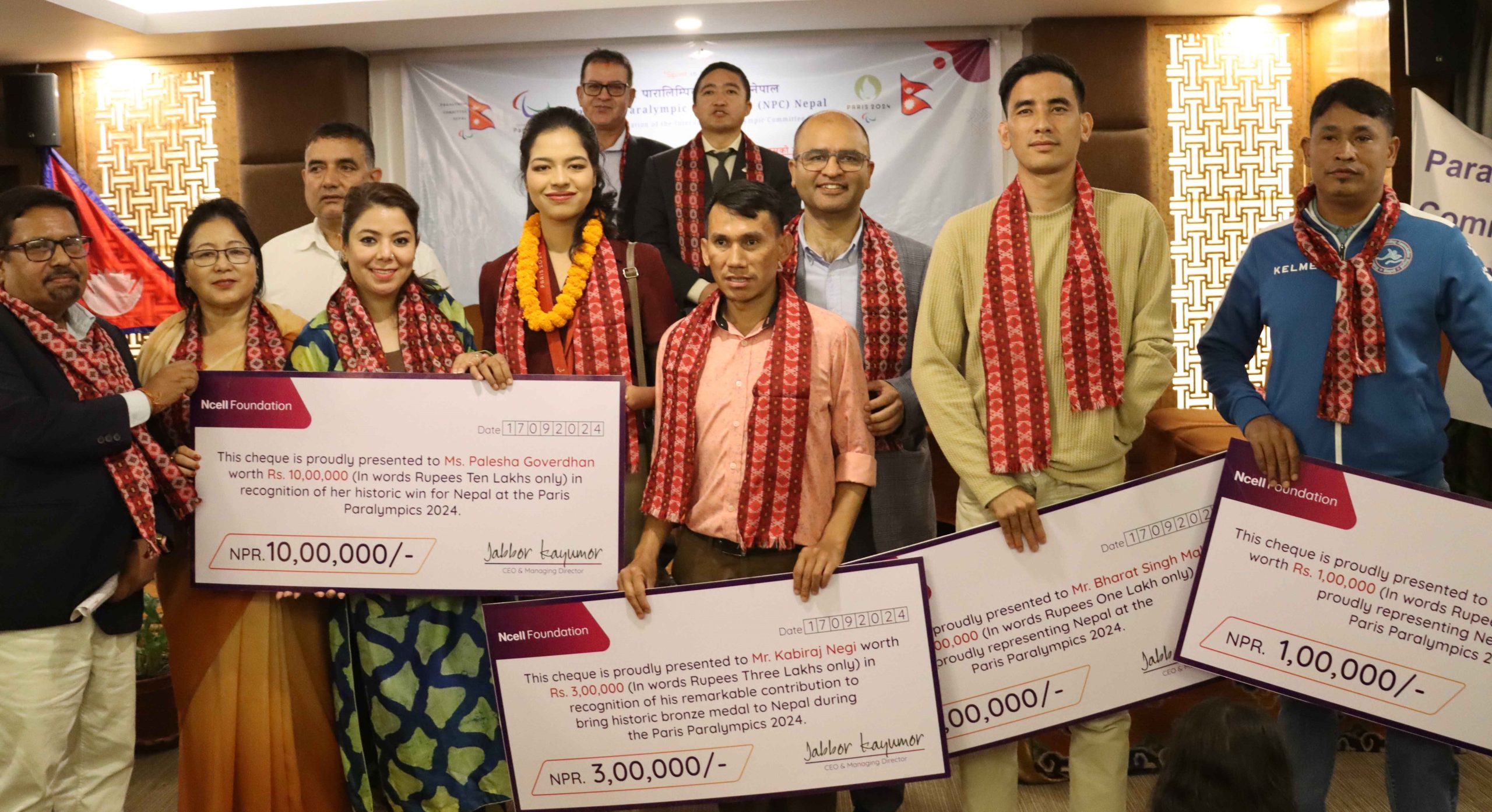 Ncell had announced to felicitate Palesha and other players and coaches immediately after the historic win of Palesha at the Paris Paralympics. Last year, on the occasion of 18th anniversary, Ncell announced the strategic partnership with NPC for training and development of Para athletes of the country.