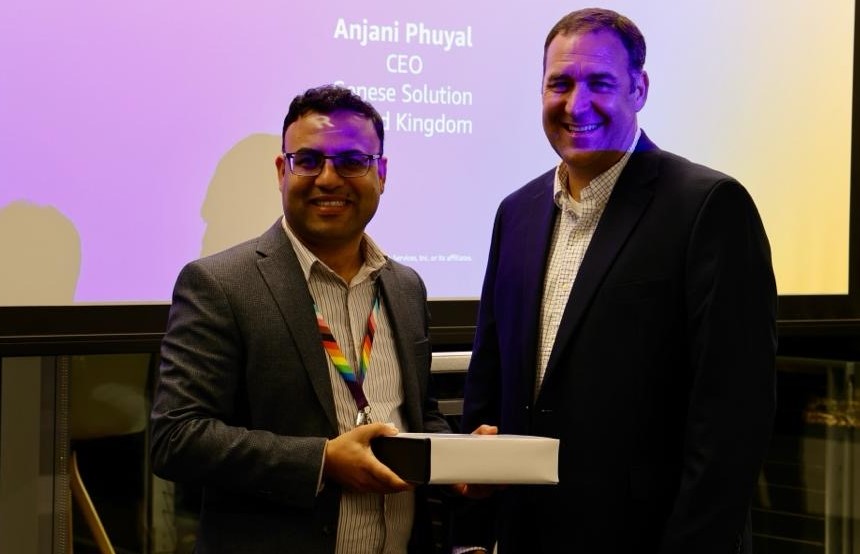 USA: CEO of Genese Solution, a UK-based IT consulting company, Anjani Phuyal, has been recognised as a top AWS Ambassador at the AWS Global Summit being held at Amazon’s global headquarters in Seattle, Washington. He has been recognised as top AWS (Amazon Web Services) Ambassador for UK and Ireland region.