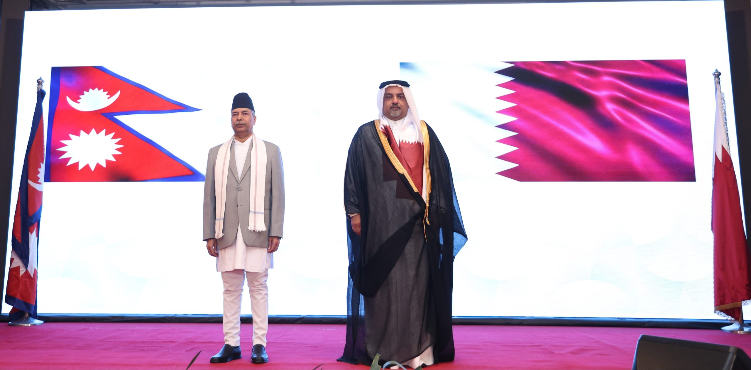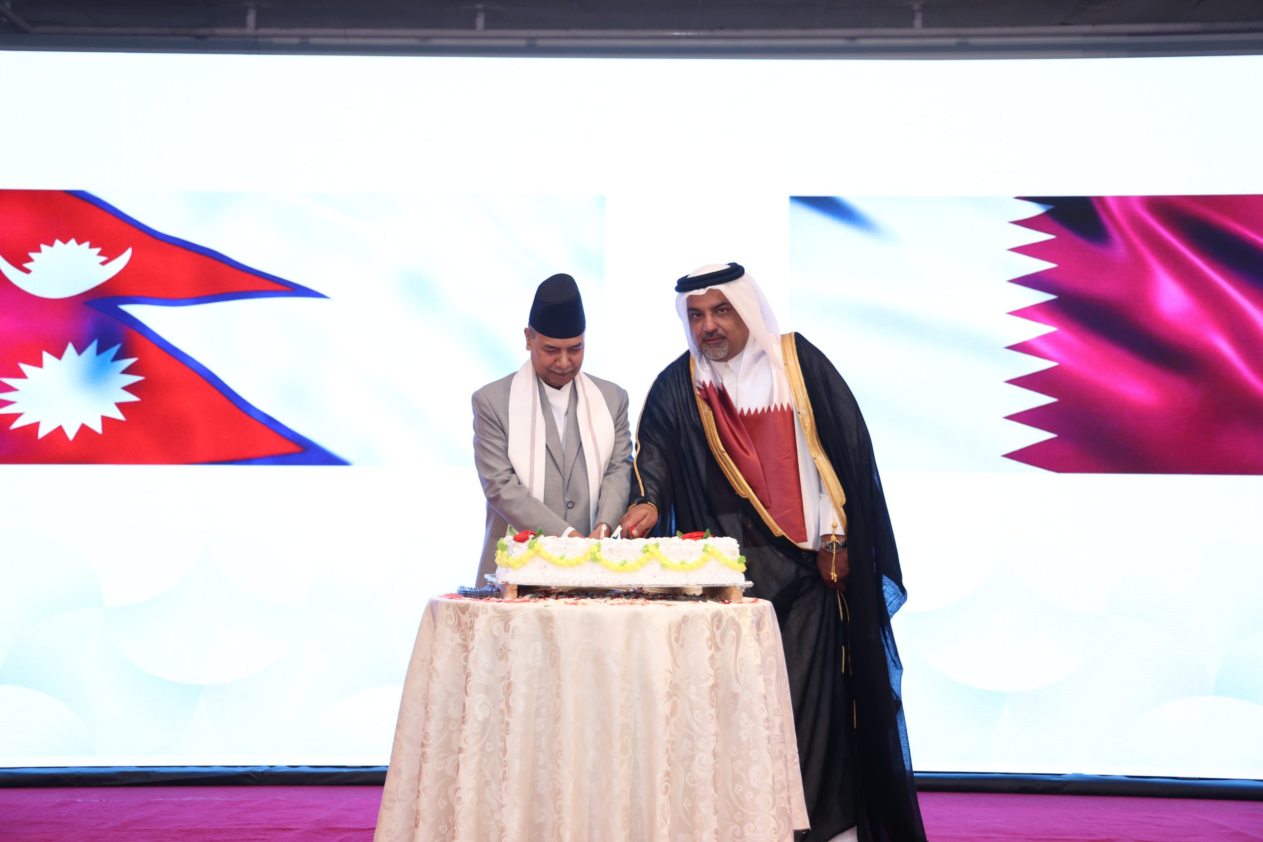 The day is celebrated with immense pride and enthusiasm across Qatar, while Qatari embassies worldwide host events to mark the occasion. In Nepal, the Embassy of the State of Qatar, in Kathmandu organized a series of programs to celebrate the day. Vice President of Nepal, Ram Sahay Prasad Yadav, attended a dinner hosted by the embassy, where he extended his heartfelt wishes to the State of Qatar and its people. Qatari Ambassador to Nepal Mishaal bin Mohammed Al-Ansari and Vice President Yadav jointly inaugurated the Celebration by cutting the cake.