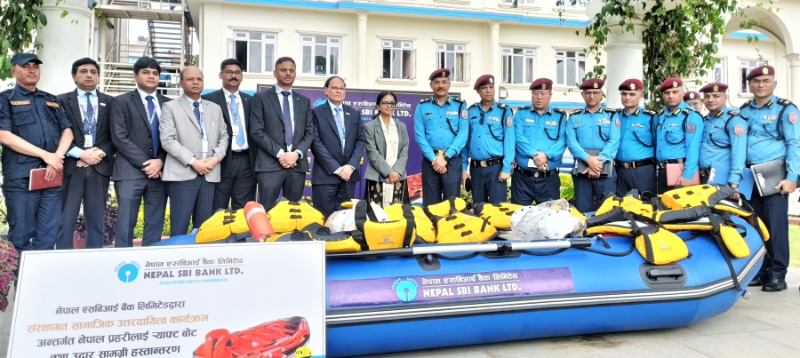 KATHMANDU: Nepal SBI Bank Ltd. (NSBL) conducted a Corporate Social Responsibility (CSR) activity by donating a raft boat and rescue equipment to the Nepal Police Headquarters in Naxal, Kathmandu. The items were formally handed over by NSBL Chairperson Ms. Jayati Bansal to Mr. Siddhi Bikram Shah, Additional Inspector General (AIG) of Nepal Police.