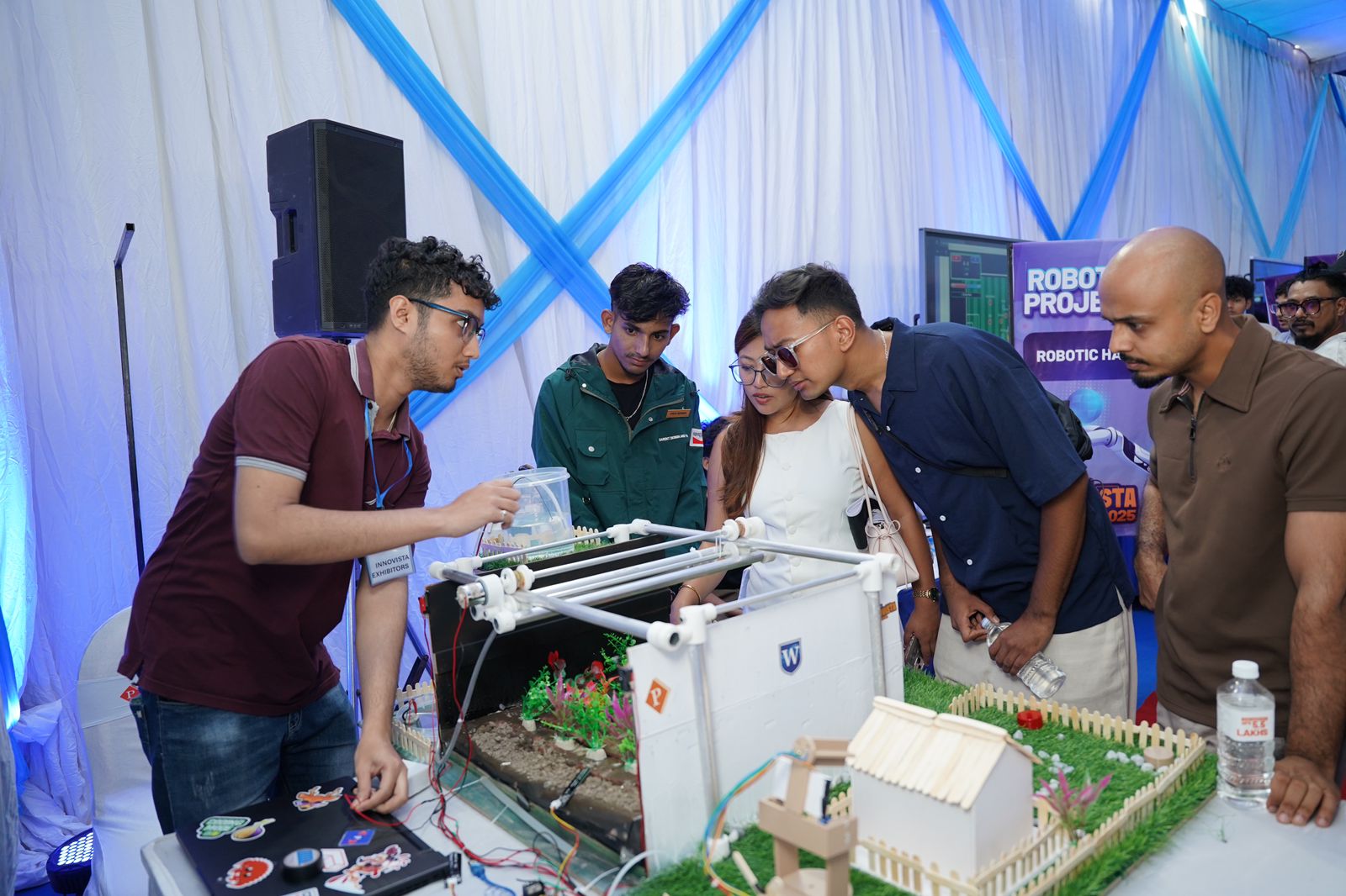 Developed by 170 BSc IT students, the projects blend strong technical skills with commercial potential. Standout innovations include an FPV drone used for flower showers during the opening ceremony—students plan to adapt it for future delivery services—and Robo Soccer, featuring football-playing robots. Other crowd-pullers are a dancing robot that moves to music, an emotion detection system recommending songs based on facial expressions, the Danphe operating system, an EV bike, and a smart home system with automatic alarms and shut-off for gas leaks.
